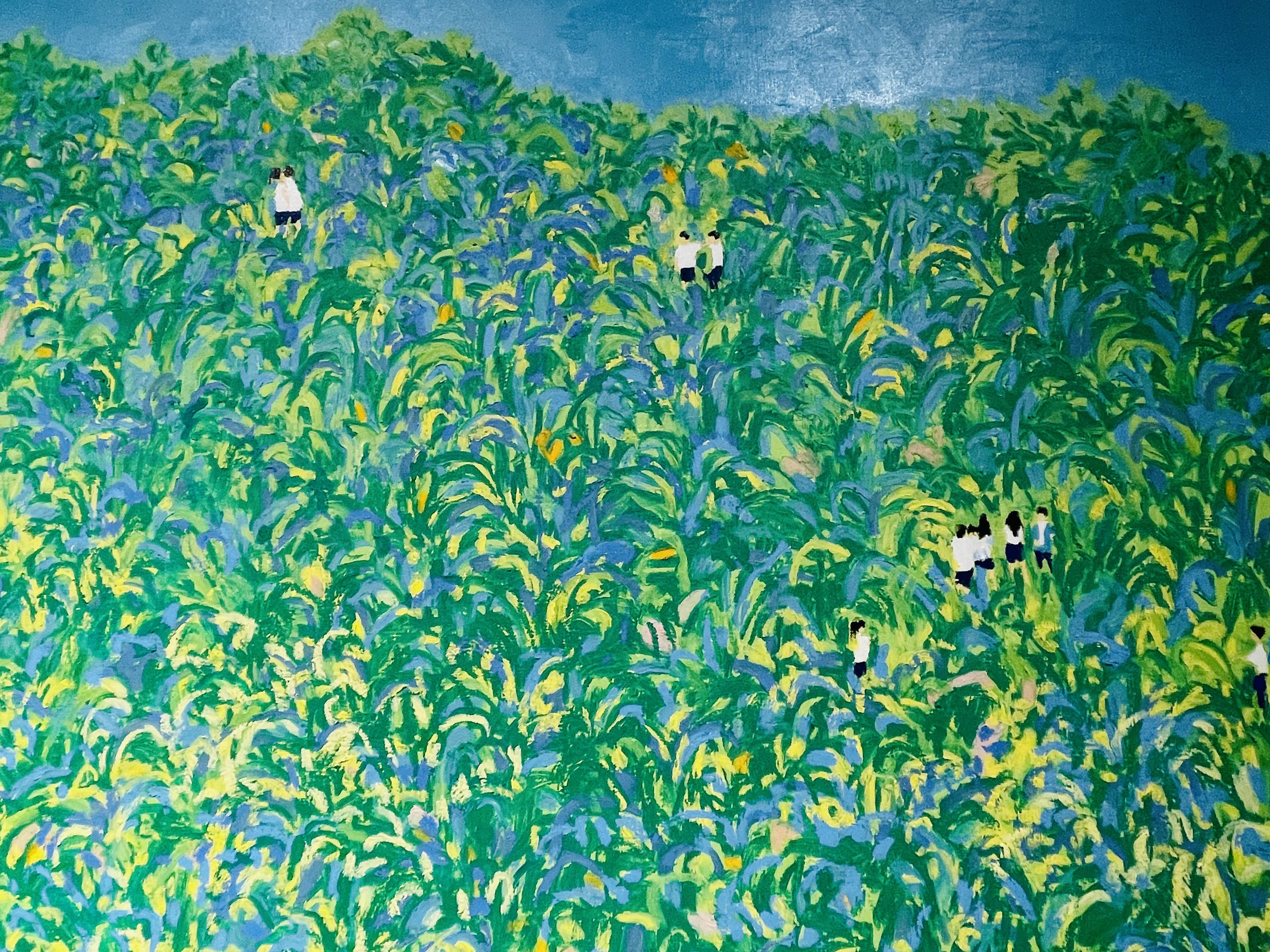 풍경으로 문장들이 스며들고 있다, 문장이 스며든 풍경엔 고요처럼 그린이, 나는 그린의 이끌림에 흐르는 물처럼 숲속을 걷는다, 그린이 켜켜이 쌓이는 숲엔, 나무, 풀, 꽃, 새, 벌레들이... 어쩜, 그린의 만 밖에서 쉬지 않고 웅얼거릴까, 숲속엔 명사와 형용사가 조사에 섞여 문장들이 떠다니고 있잖아, 싱그럽잖니, 수풀 사이 곤충들이, 잔가지에 걸친 새들이, 모든 것들의 소리가, 하늘에서 그린이 내려와 안개처럼 풍경을 덮는다, 숲의 정적이잖니, 귓가에 울리던 소리가 멀어지고 있어서, 나의 발걸음에, 나의 인기적으로 놀란, 풍경의 윤곽이, 그린으로, 그린은 더 짙은 그린으로, 풍경 속으로 끝없이 그린이 파고 들어서, 숲속을 걷다 길을 잃어버리는 상상을 한다, 함께한다는 것, 누군가와 함께 걷는다는 것, 함께 본다는 것, 영원히 함께했으면, 나의 바램이 그린처럼 번졌으면 좋겠어서, 툭 , 툭툭-, 풀 사이 맺히는 솔방울이 길 안내를 마다하지 않는 수고스러움으로, 고마운 마음으로, 행운을 빌겠습니다, 문장이 내리는 숲엔 아무일도 일어나지 않았다, 나는 아무것도 할 수 없음에 감사를 전합니다