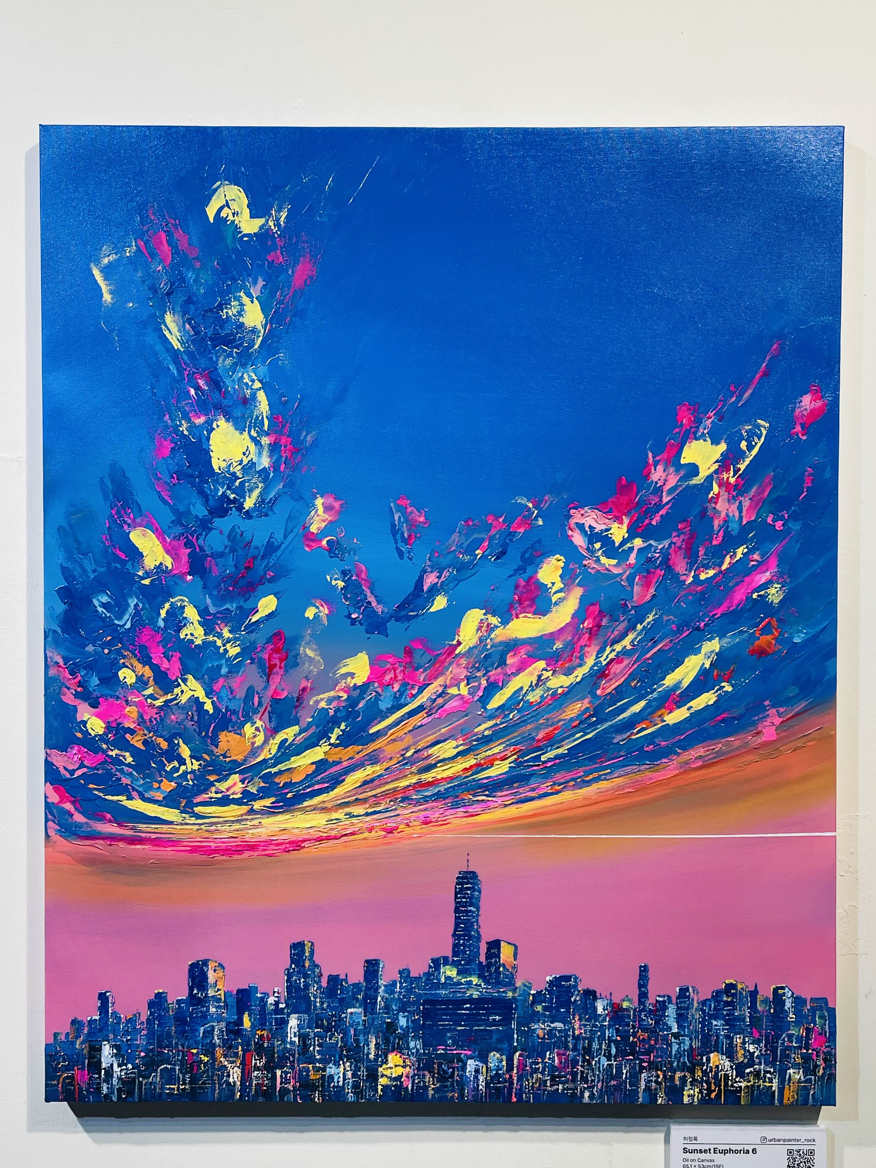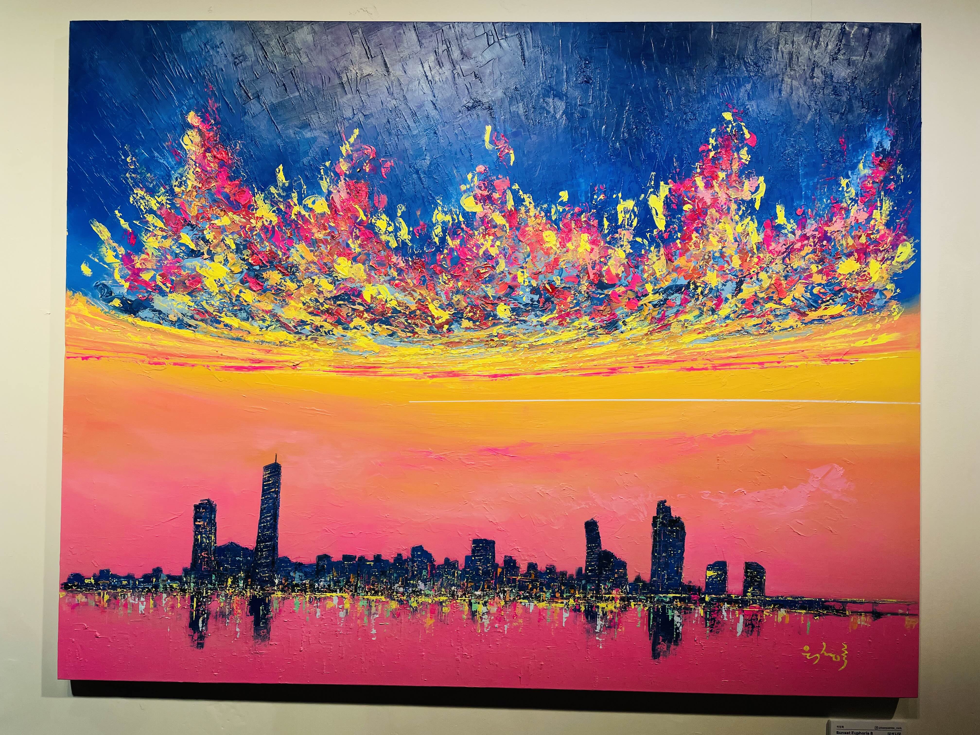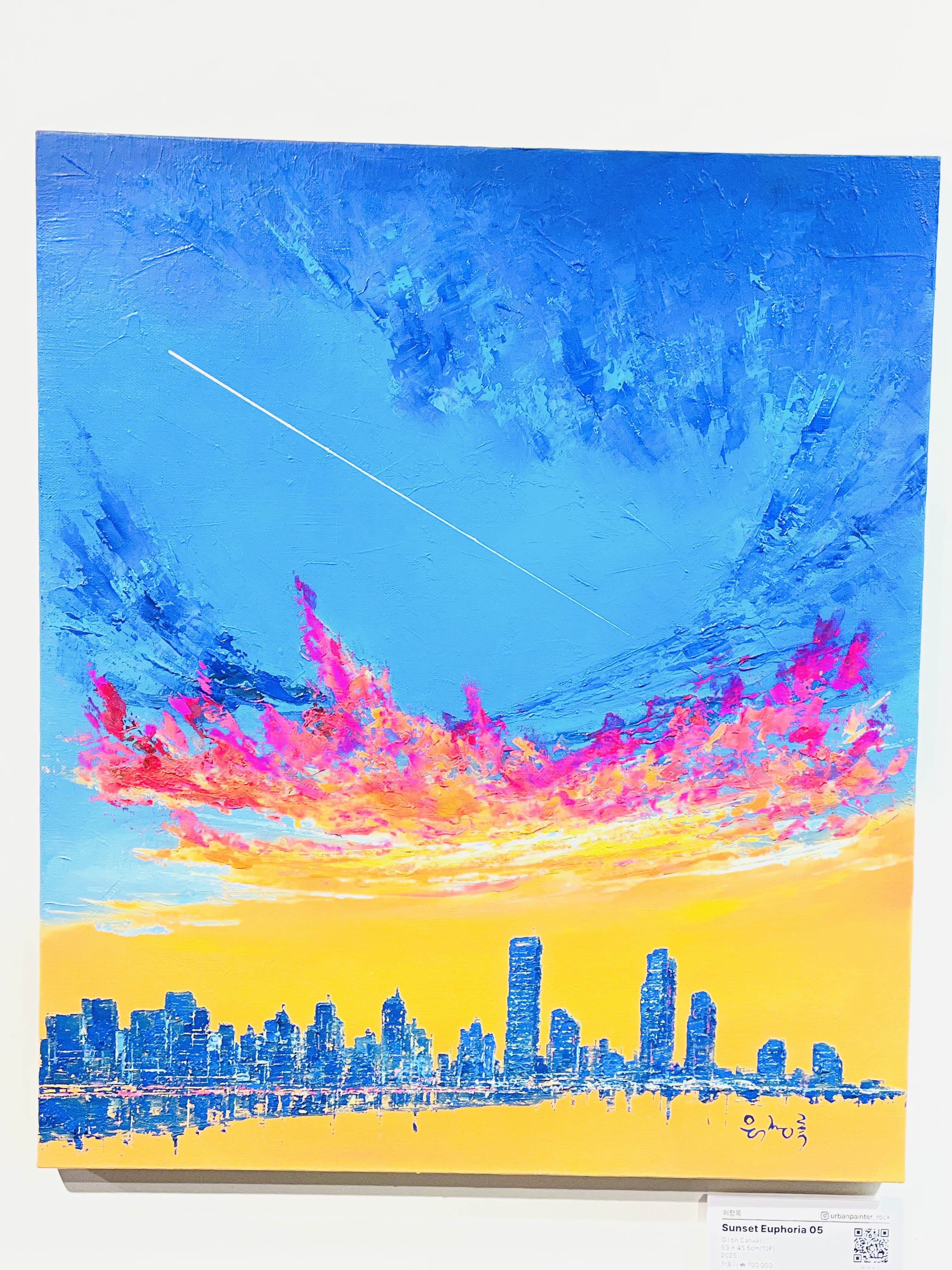 특히 〈Sunset Euphoria〉 연작에서 두드러지는 것은 노을의 황홀경(Euphoria)이다. '유포리아'라는 단어가 함의하는 도취와 해방의 감각은 단순한 퇴근의 기쁨을 넘어, 반복되는 일상 속에서 자신을 지탱하게 하는 내밀한 의식(儀式)의 성격을 띤다. 작가는 이를 "오늘 하루를 무사히 살아낸 나 자신에게 보내는 작은 위로"라고 말한다.