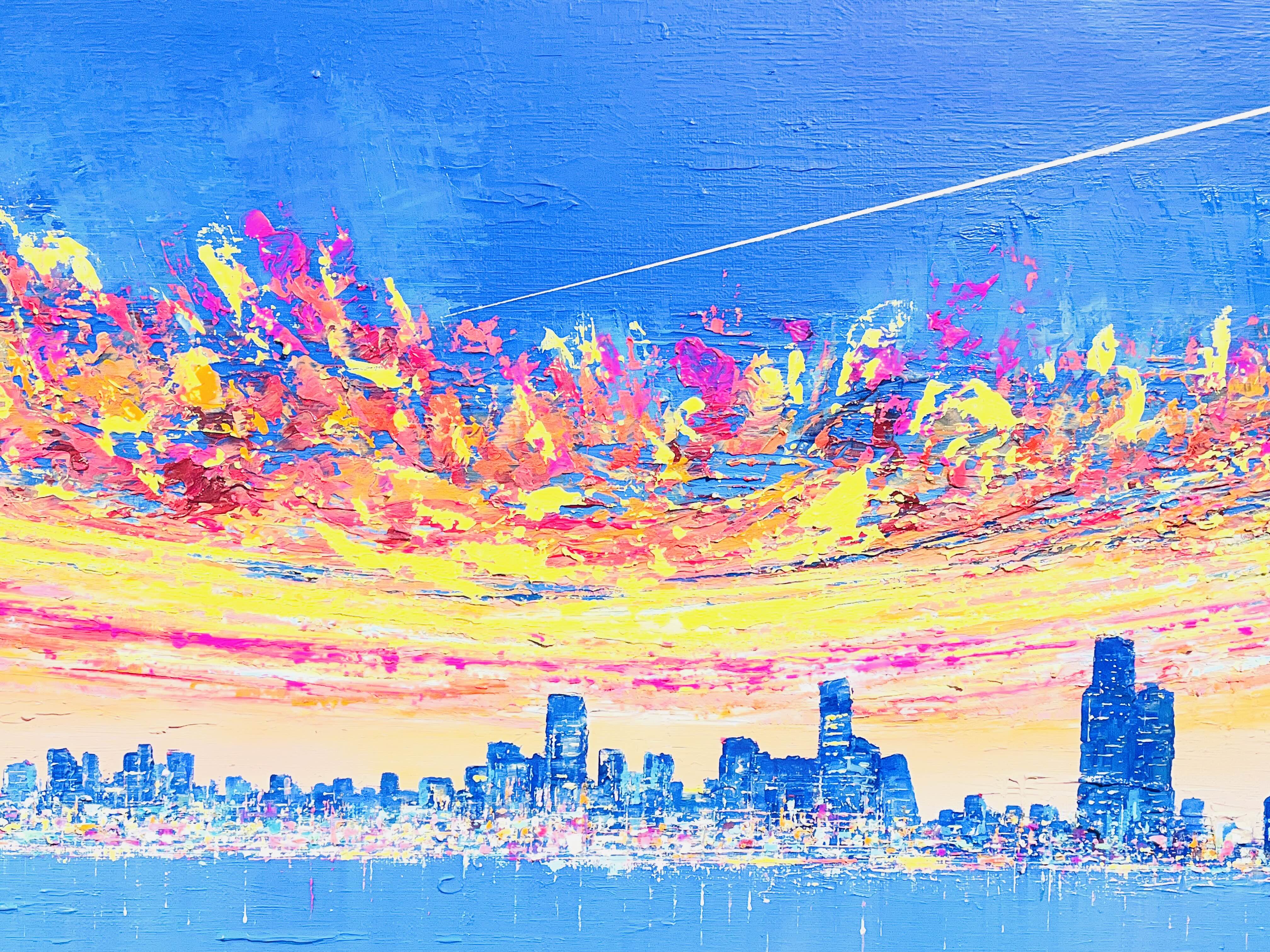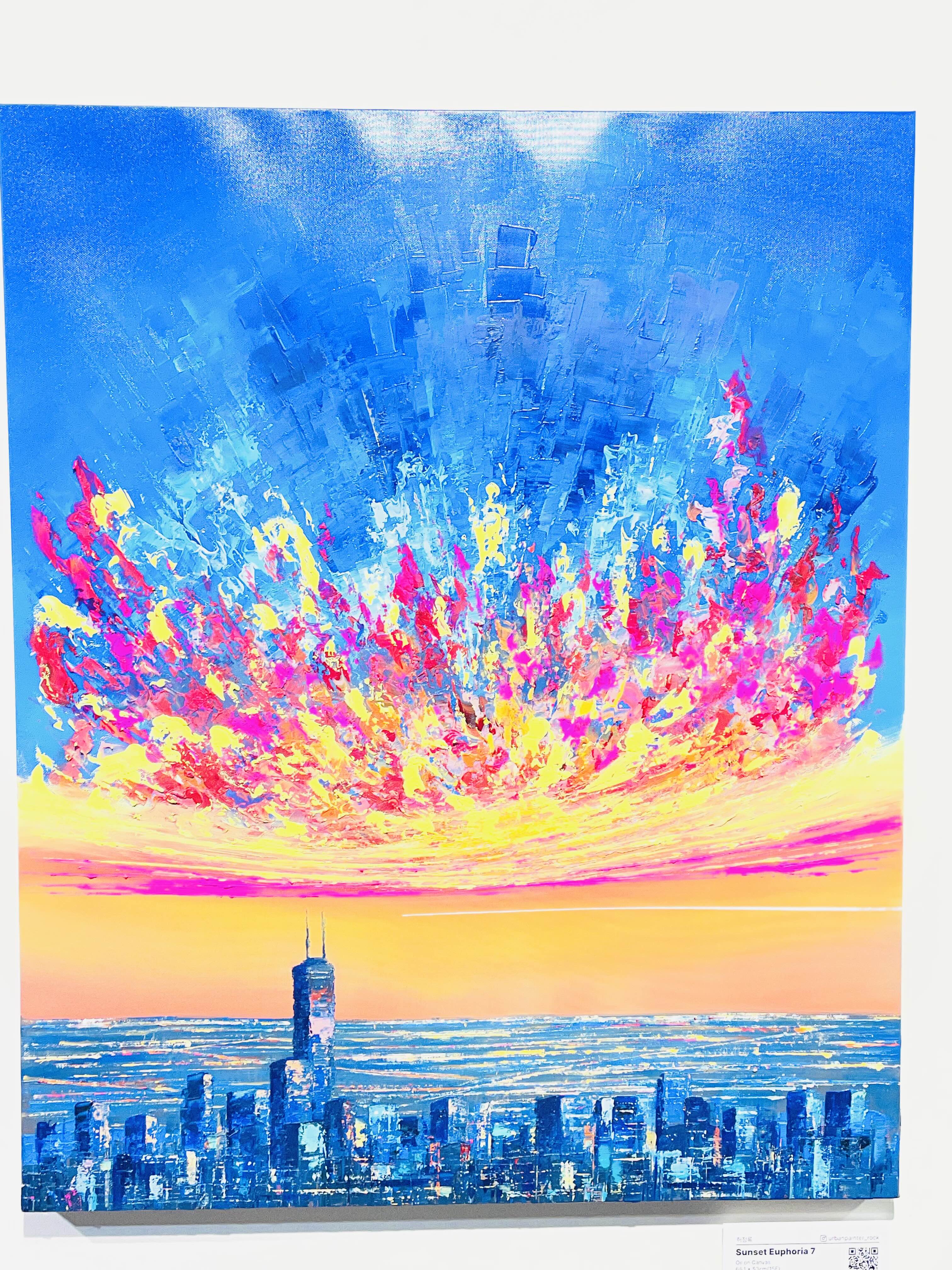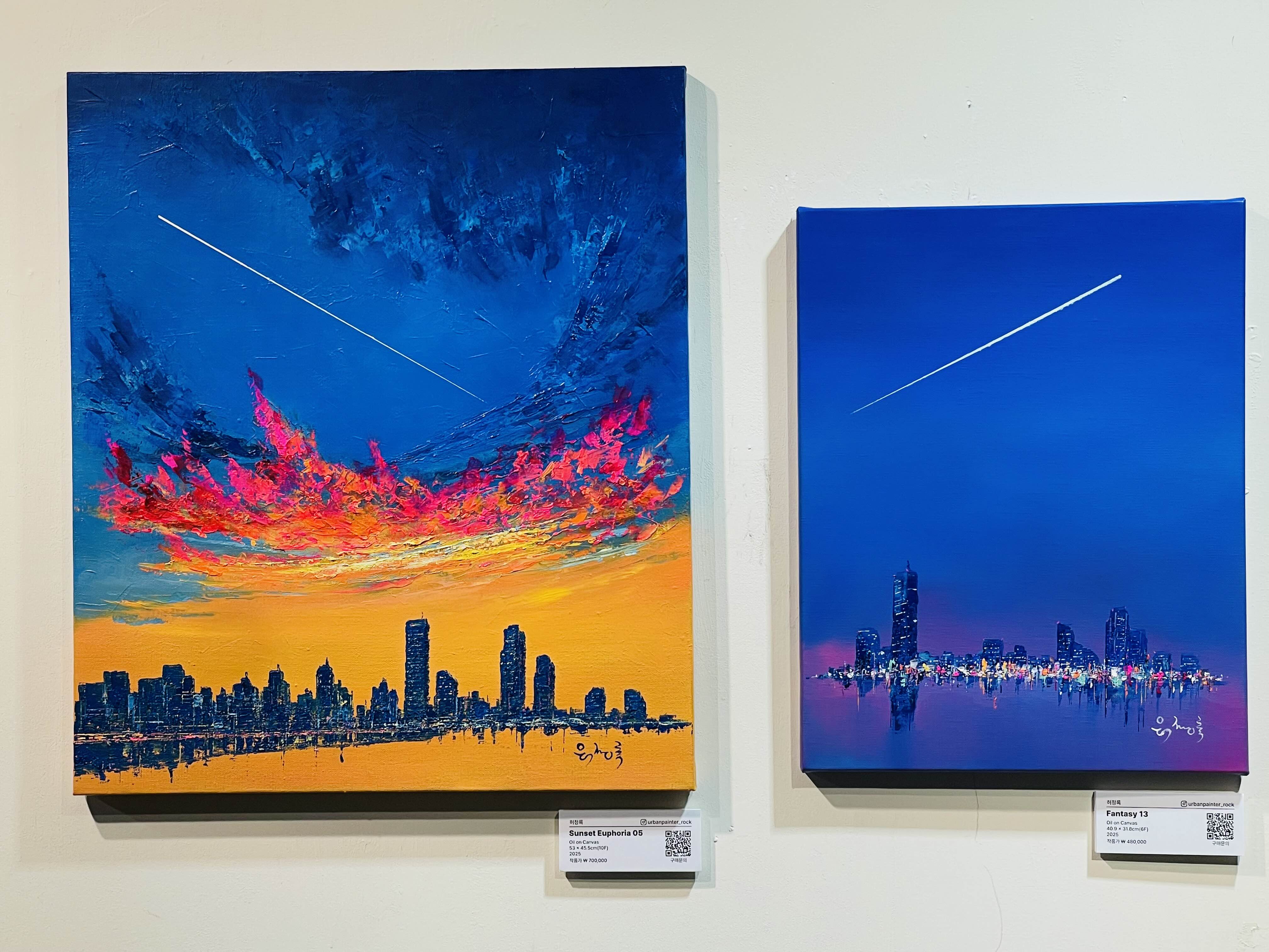 특히 〈Sunset Euphoria〉 연작에서 두드러지는 것은 노을의 황홀경(Euphoria)이다. '유포리아'라는 단어가 함의하는 도취와 해방의 감각은 단순한 퇴근의 기쁨을 넘어, 반복되는 일상 속에서 자신을 지탱하게 하는 내밀한 의식(儀式)의 성격을 띤다. 작가는 이를 "오늘 하루를 무사히 살아낸 나 자신에게 보내는 작은 위로"라고 말한다.