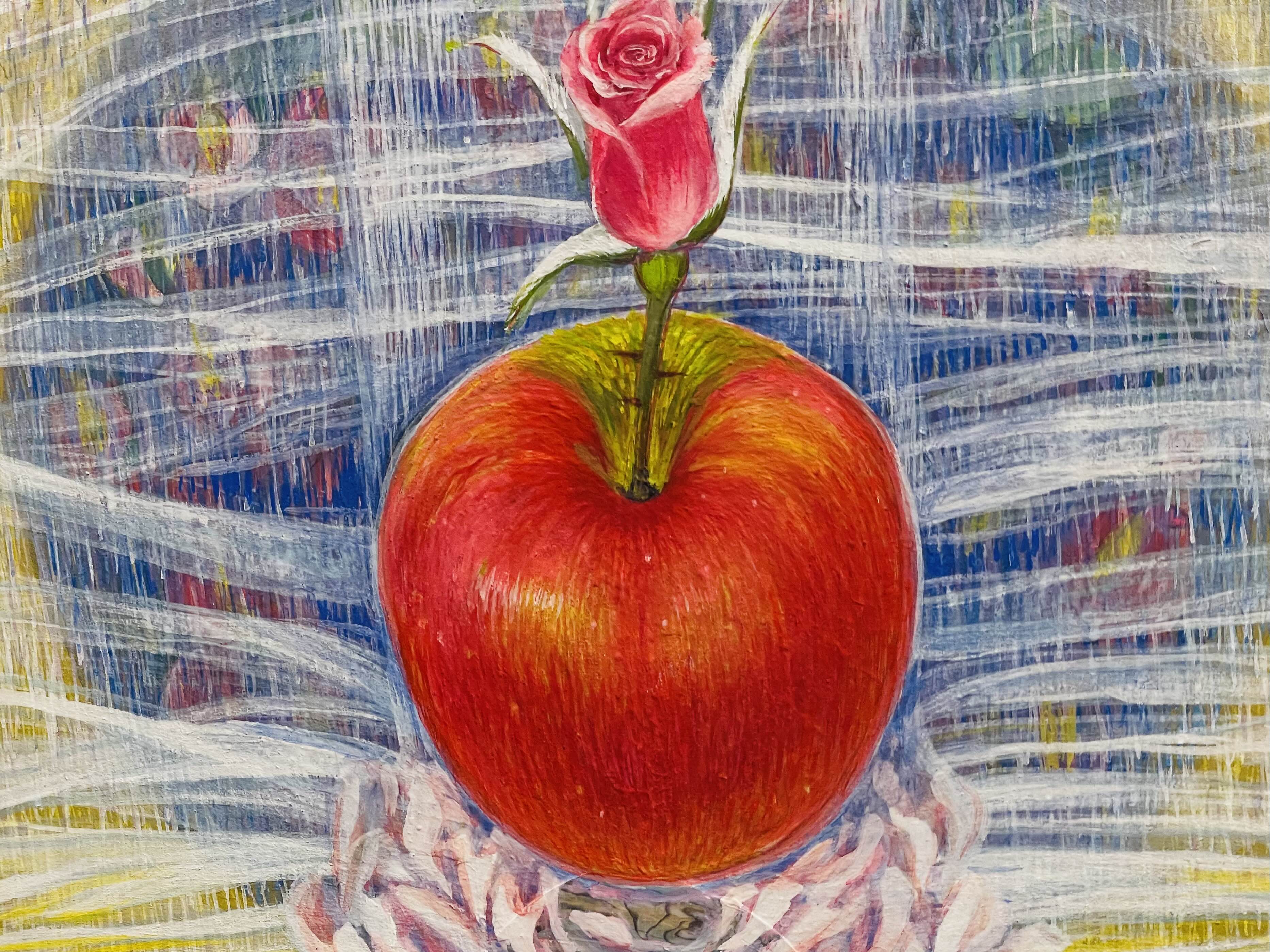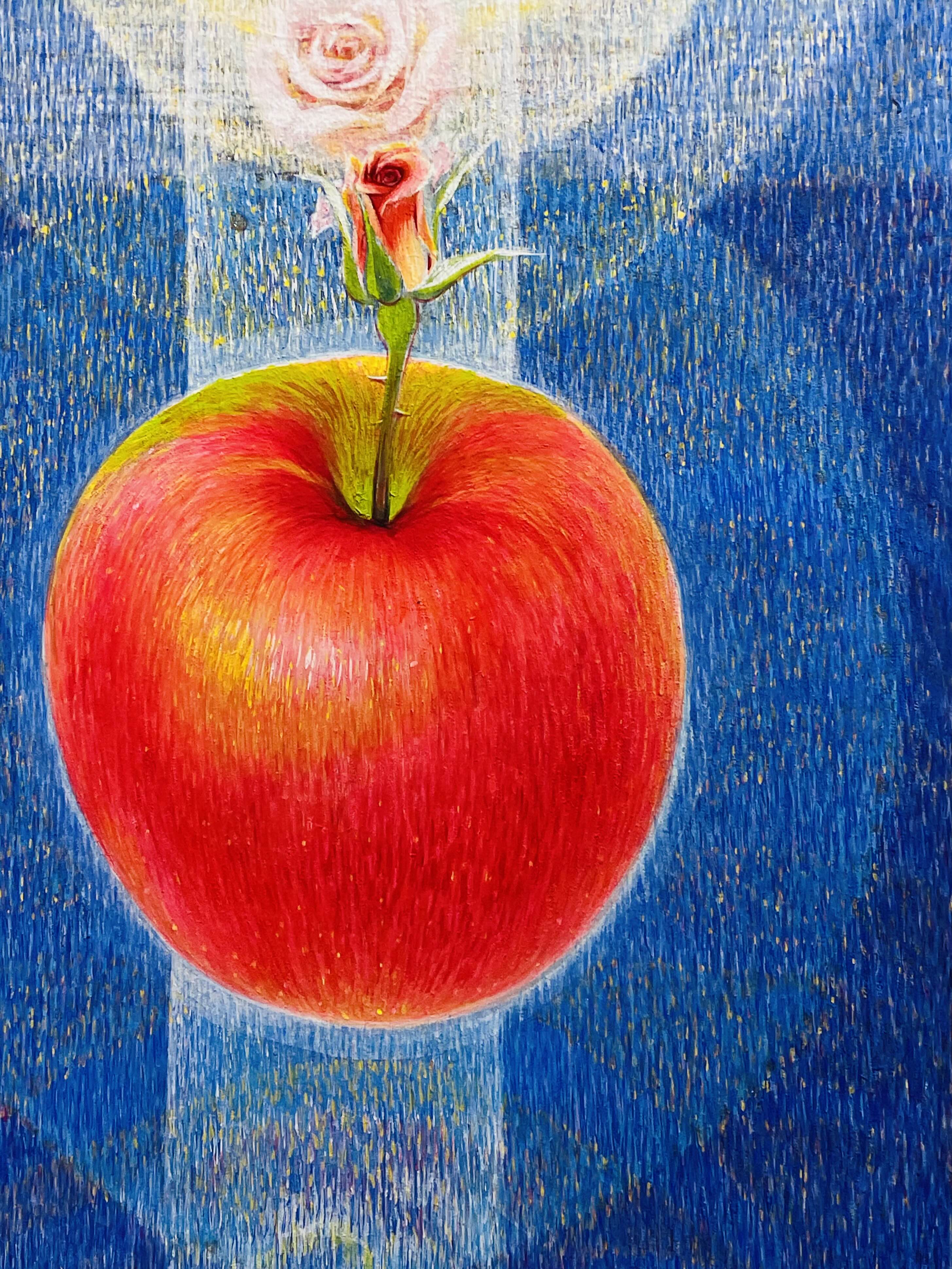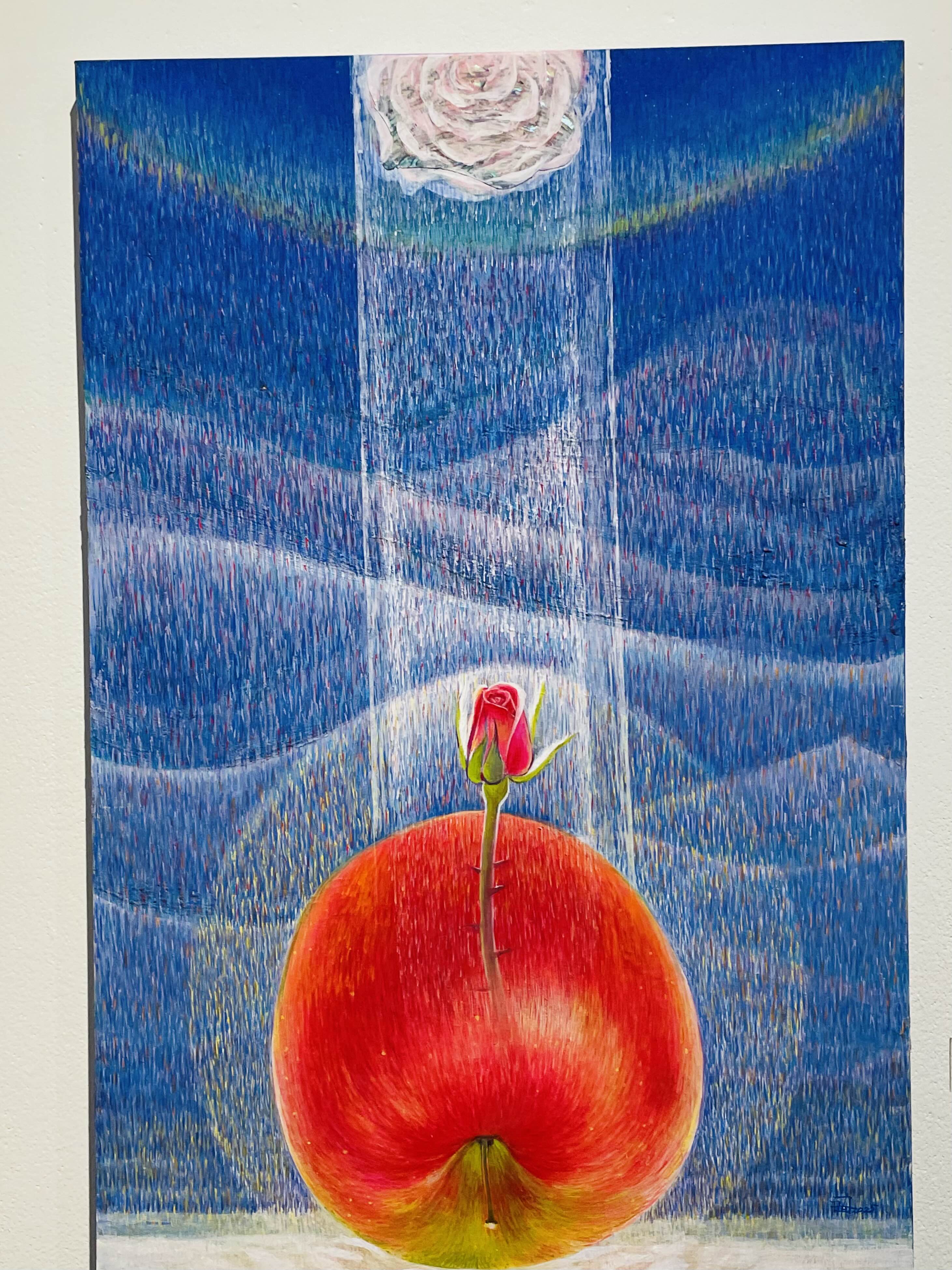 오름의 곡선은 생명을 잉태하고 품어내는 본질적 개념으로 확대된다. 맥놀이와 같은 신비한 숨비소리의 울림은 목숨줄 같은 테이 붉은사과로 현현하며, 들숨과 날숨으로 허물어진 산허리는 닳고 닳아서 뭉툭한 곡선으로 깎여 나간다. 상처와 슬픔과 고통은 아름다움의 결정체가 되어 떠오르는 태양처럼 강렬한 생명을 품은 사과가 되어 희망의 터전인 또 하나의 오름이 된다.